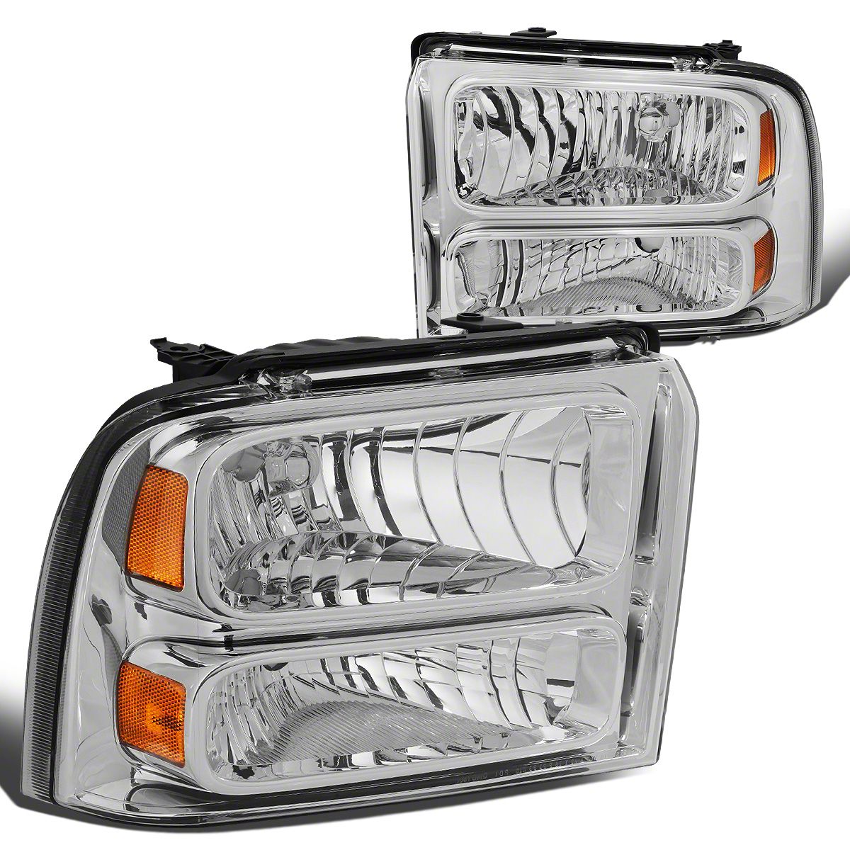 Application. The Factory Style Headlights with Amber Corner; Chrome Housing; Clear Lens fit 2005-2007 F-250 Super Duty models.