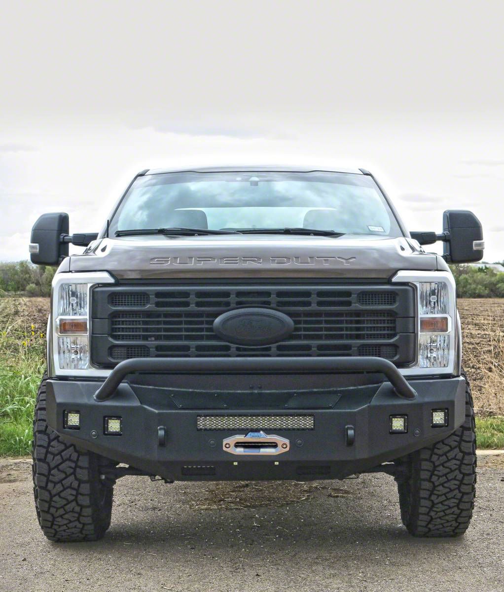 Rugged Front-End Protection. The Fortis Winch Front Bumper with Hoop is engineered to add trail-ready toughness and functionality to your 2023 to 2026 F-250 Super Duty. With winch compatibility, integrated light mounts, and D-ring shackle provisions, this bumper delivers serious utility while enhancing the aggressive look of your truck.