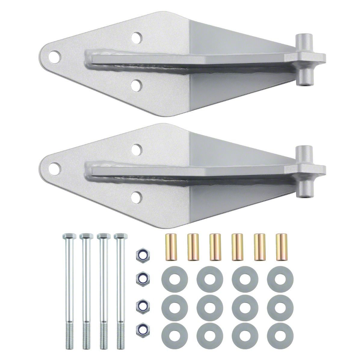 Durable Suspension Upgrade. The Front Dual Shock Mount Bracket Kit enhances vehicle stability and control during off-road driving by providing a reliable mounting solution for twin shocks. It improves handling characteristics under rugged conditions and is designed for demanding environments, making it essential for those seeking improved suspension performance and durability.