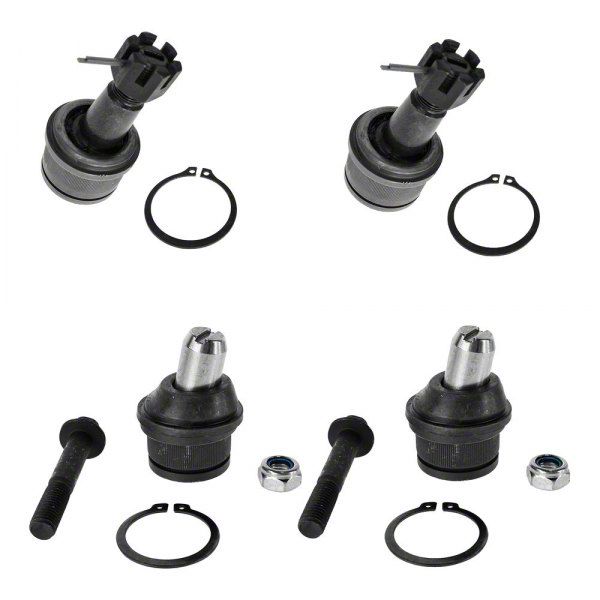 Secure and Free-Flowing Movement. Ensure smooth, safe, and trouble-free movements in your suspension system with the Front Upper and Lower Ball Joints. This set of 4 ball joints is designed for driver and passenger side placements. Furthermore, they are direct replacements for your malfunctioning stock ball joints to ensure restored functionality and efficient performance.