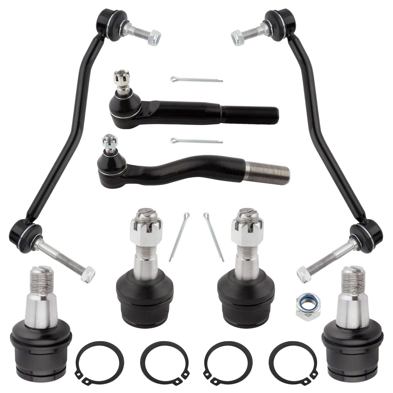 Front, Left, Lower, Right, Upper Package Included: 2x Front Upper Ball Joints - K8388 2x Front Lower Ball Joints - K8607T 1x Front Driver Side Outer Tie Rod End- ES3423 1x Front Driver Side Inner Tie Rod End- ES3427 1x Front Right Sway Bar End Link (Passe