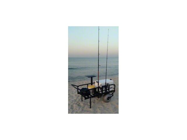 The High-Sands Beach Buddy, 2-wheeled version, has a large 48” x 20” x 11” cargo basket to handle all your gear, comes complete with a five (5) rod capacity rod holder, and a 15” x 9” bait cutting station — both of which are removable when not fishing. This is where the similarity ends.