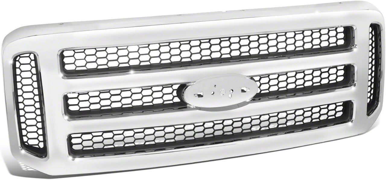 Stylish Front-End Replacement. The Upper Grille adds a bold and refined touch to the front of your 2005-2007 Ford F-250 Super Duty. Featuring a polished chrome finish and honeycomb mesh styling, this grille is designed to elevate your truck’s appearance while maintaining OEM functionality. It includes a badge slot to retain your factory branding and enhances airflow to the engine bay.