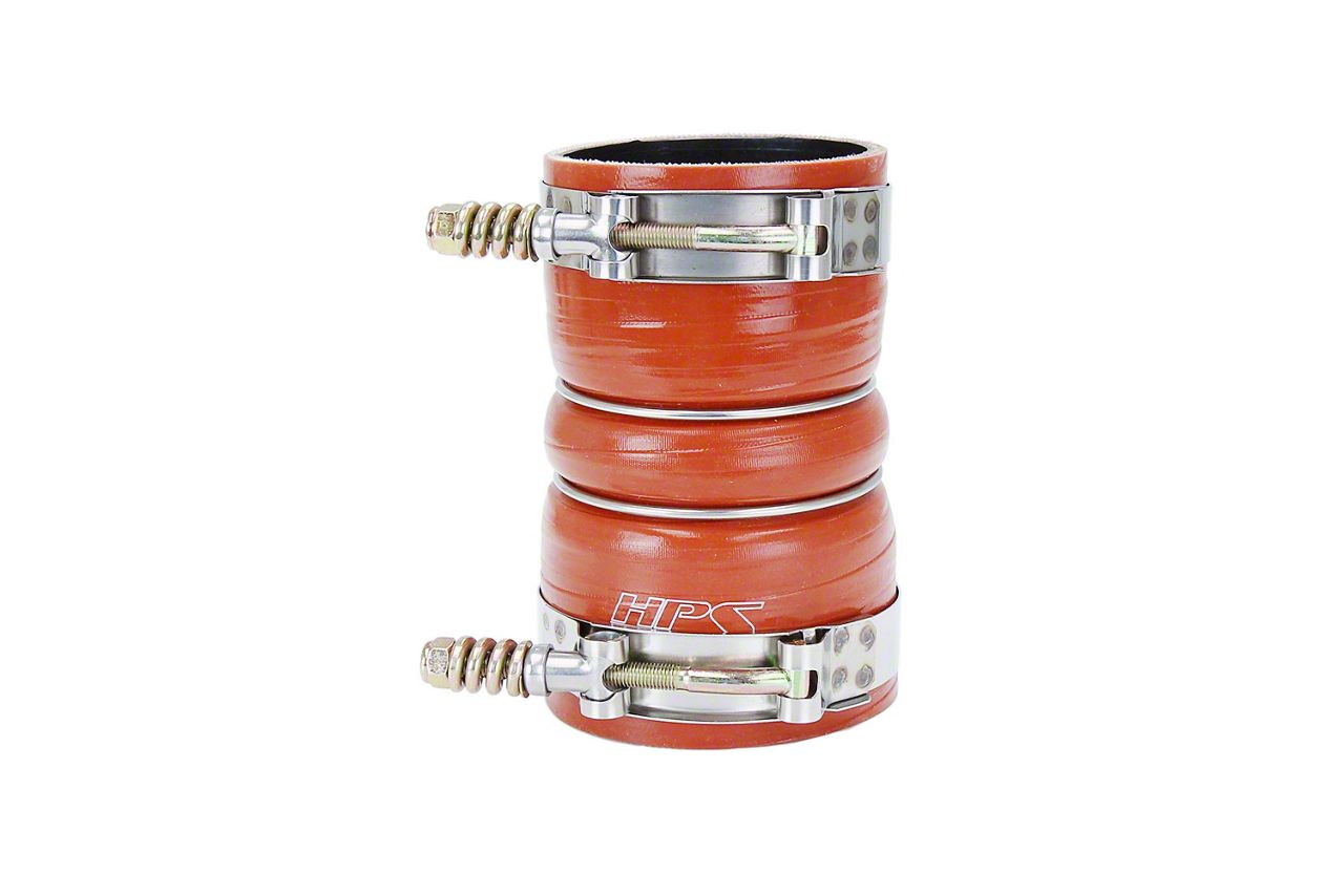 This HPS High Temp 4-ply Reinforced Silicone Turbocharger Intercooler Boot is an upgraded replacement for an OEM turbocharger intercooler boot, which is known to weaken and fail over time. Crafted with oil-resistant fluorolined silicone and engineered for superior performance, it is capable of enduring high levels of boost pressure and extremely high temperatures (up to 500F) under the hood, ensuring reliability across various operating conditions. With 4 layers of aramid reinforced silicone and a pressure tolerance of over 100 PSI, boost leaks are a thing of the past. Designed using the OEM component, this HPS product guarantees a seamless fit. Included in this kit are stainless steel spring loaded T-bolt clamps for an easy and leak-free installation. Upgrade your truck or equipment with this boot kit and avoid costly expenses in the long run.