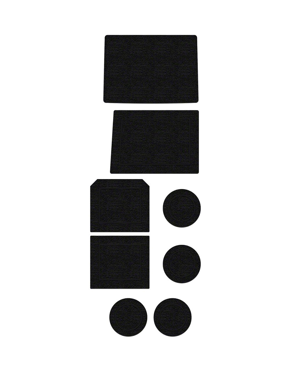 Construction and Appearance. Made from dual-layered, non-absorbent foam with a sleek black/black color scheme, these inserts resist spills, shifting, and wear over time. The non-skid surface keeps items in place, while the noise-reducing design minimizes rattles from cups, coins, or keys. Built to last the life of the vehicle, they deliver a custom look and long-term durability.
