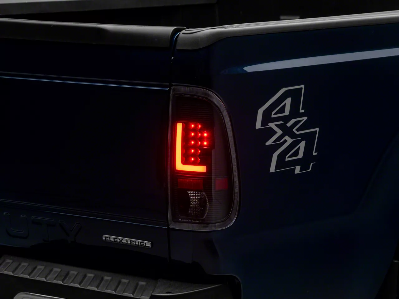 Illumination Upgrade. Give your F-250 enhanced visibility with the Red L-Bar LED Tail Lights in Black Housing and Clear Lens. This pair of tail lights directly replace your old and failing factory tail lights for better illumination, especially during nighttime driving. These tail lights come in a unique Red L-Bar design that easily makes this tail light a notch above the OEM part.