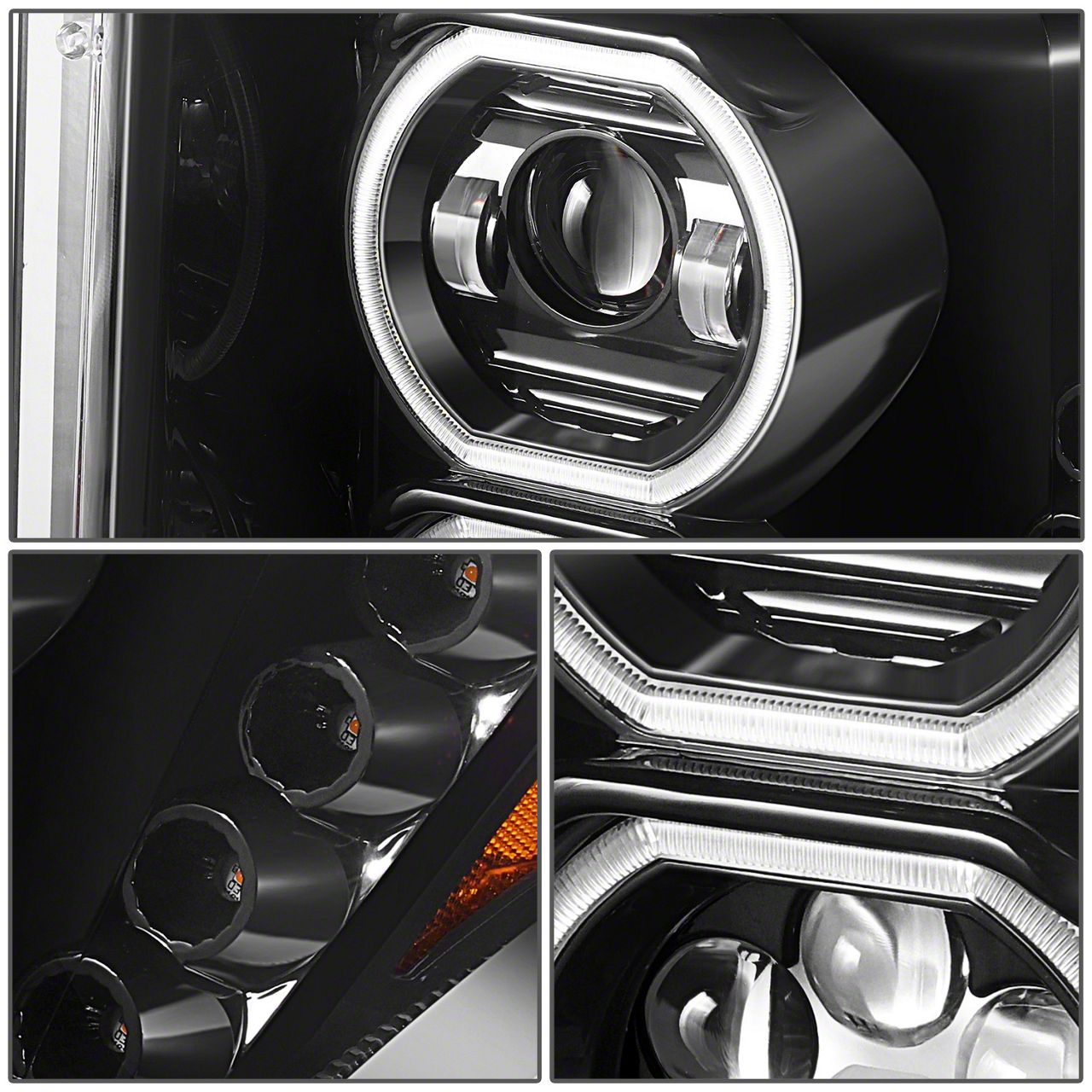 Enhanced Visibility Upgrade. The LED DRL Halo Projector Headlights are a premium lighting solution designed to enhance both the functionality and appearance of your truck. These headlights offer reliable performance and are built for drivers who demand durability and an aggressive, modern look. With LED DRLs and halo accents, this product boosts nighttime visibility while making a bold statement on the road.