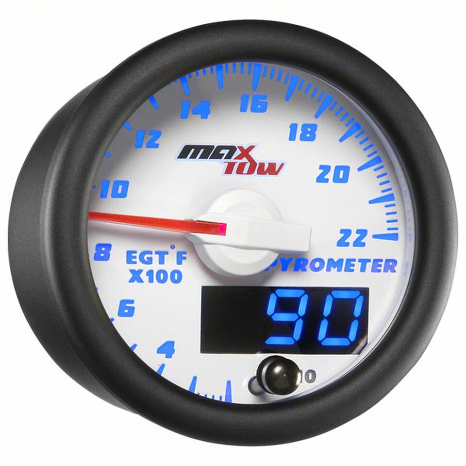 Description. MaxTow’s White Double Vision™ Series 2200° F Exhaust Gas Temperature Gauge is electronically driven truck gauge that includes a type K thermocouple EGT probe that reads and displays your truck’s exhaust gas temperature from 200° to 2200° Fahrenheit with unmatched accuracy.