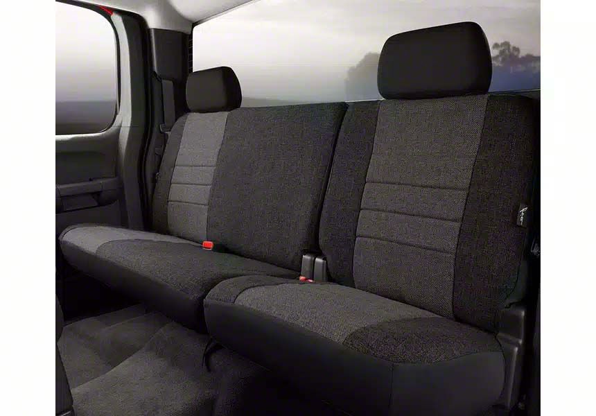 Comfortable Rear Seat Protection. The Fia OE Series Seat Cover is designed to enhance and preserve your truck’s rear seating area with a refined, factory-inspired appearance. Crafted to protect the stock upholstery from daily wear, spills, and dirt, this cover set delivers reliable functionality with a clean and professional look. The charcoal black finish blends seamlessly with most interior trims, making it a practical and stylish upgrade.