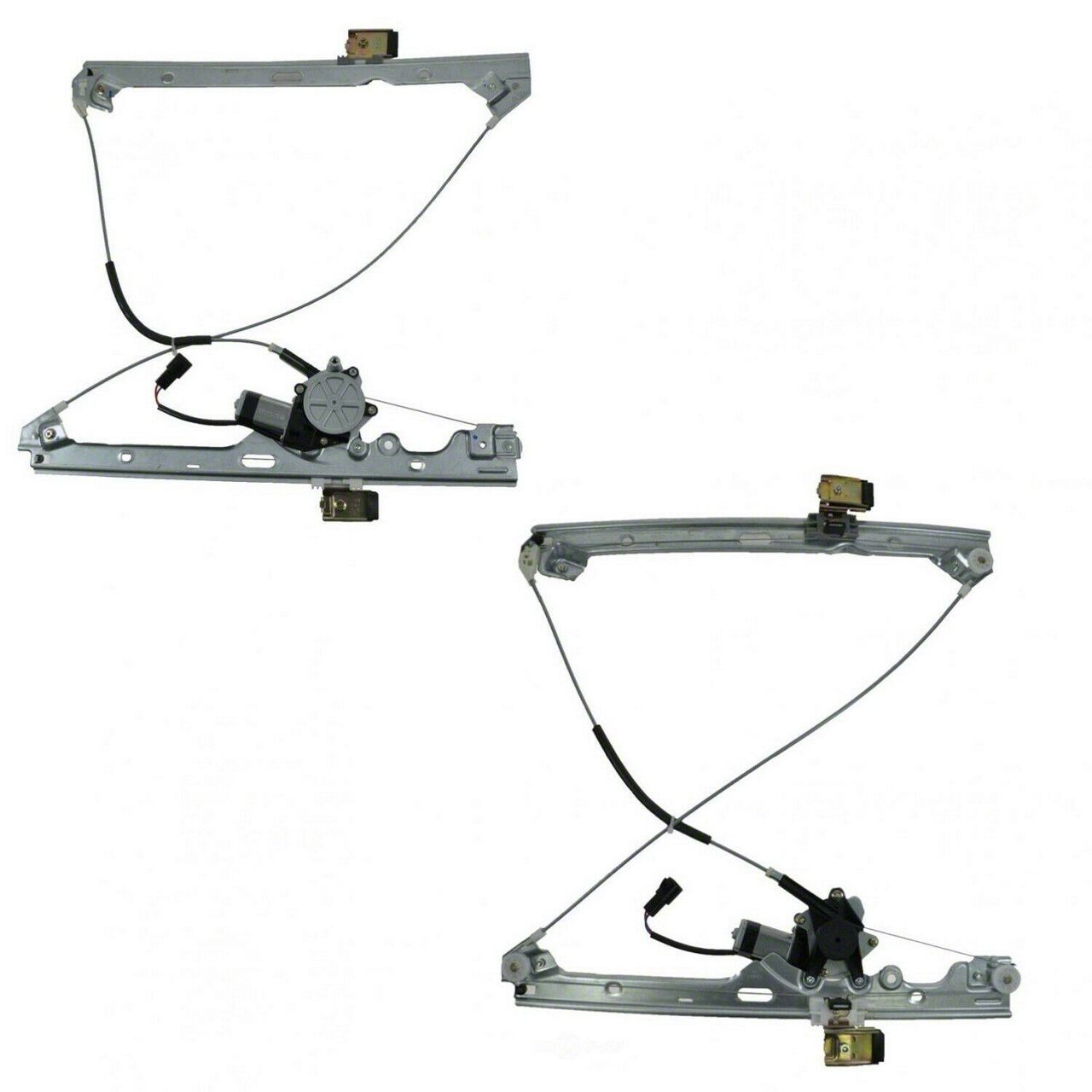 Power Window Regulator Assembly. The Power Window Regulators; Front are essential components designed to facilitate the smooth raising and lowering of the vehicle's front driver and passenger side windows. These assemblies combine the motor and regulator into a unit that efficiently controls window movement under power, ensuring convenience and comfort for the vehicle occupants. Proper functioning window regulators are vital for security, weather protection, and vehicle aesthetics.