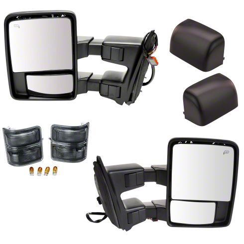 Construction and Appearance. Built from high-quality materials, these towing mirrors are engineered for strength and longevity. The textured black finish complements the rugged aesthetic of the F-250 Super Duty while resisting wear from the elements. Their robust construction ensures long-term durability even in demanding conditions.