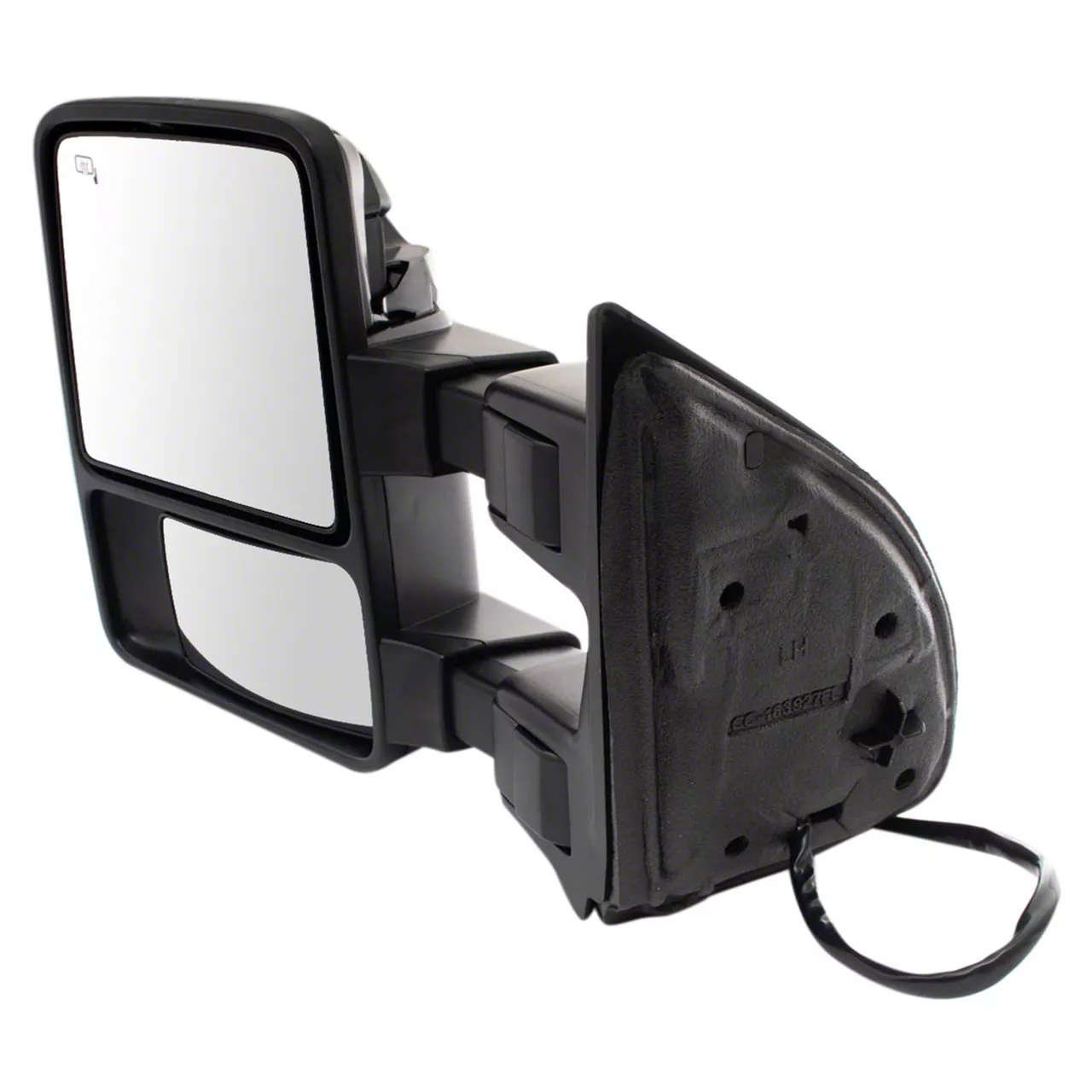 Control. Equipped with advanced power adjustment controls, this Powered Heated Towing Mirror can be conveniently adjusted from inside the cabin with just the push of a button. This capability is especially beneficial for drivers who tow trailers or caravans, as it allows for quick adjustments to the mirror's position to accommodate different load sizes and to enhance rear visibility. The ability to adjust the mirror electronically eliminates the need for manual repositioning, ensuring optimal alignment at all times and improving both safety and convenience for the driver.
