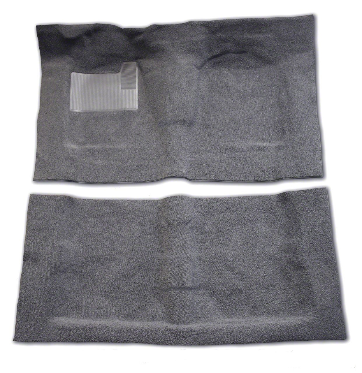 Construction and Appearance. Each carpet in the kit is designed with marked shifter locations (where applicable) to simplify installation for manual transmission setups. The electronically welded heel pad adds extra reinforcement in high-wear areas, extending the life of the carpet and maintaining its appearance. The heavy-duty nylon construction resists stains, fading, and mildew, making it a practical choice for work trucks and everyday drivers alike. The light gray finish brightens up the interior while matching or complementing factory color schemes.