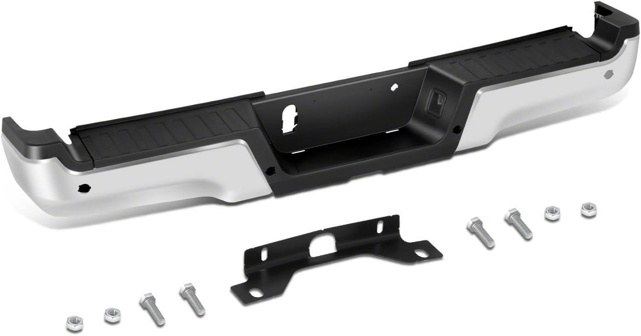 Application. This Bumper fits 2017-2022 Ford F-250 Super Duty models. It offers excellent rear protection and an upgraded look, complete with pre-drilled sensor mounts, a bumper step pad, and license plate lights, making it the perfect addition for functionality and style.