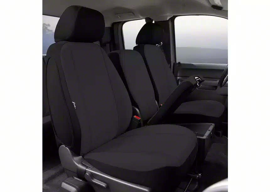 Durable Interior Protection. The Fia Seat Protector Series Seat Covers are designed to preserve the quality and appearance of your 2017-2026 Ford F-250 Super Duty’s front bench seats. These covers safeguard your stock upholstery from damage while concealing existing blemishes, scratches, and discoloration. Their matte black finish adds a sleek, stylish touch to your truck’s interior.