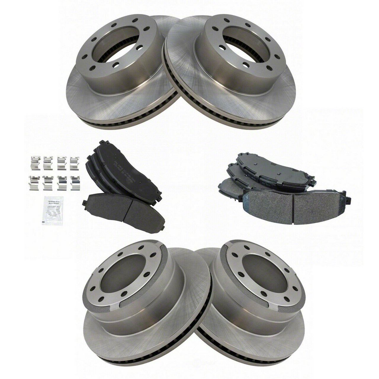 Reliable OE-Style Brake Replacement. The Semi-Metallic 8-Lug Brake Rotor and Pad Kit is a cost-effective solution designed to restore factory braking performance to your F-250 Super Duty. Ideal for daily driving and worksite demands, this kit delivers dependable stopping power and consistent performance using trusted semi-metallic brake pad technology.