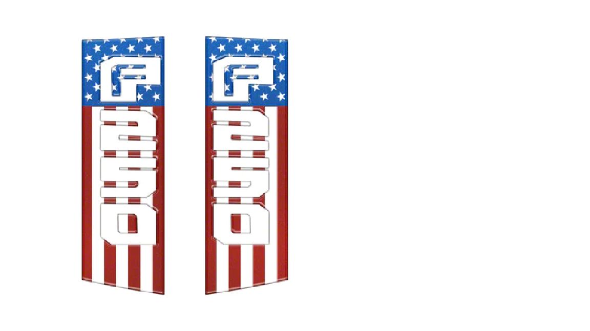 Premium Vinyl Side Emblem Accent Trim. Elevate the look of your Ford F-250 Super Duty with the Side Emblem Accent Trim featuring an American Flag design. This unique accessory is not just a statement piece but also a tribute to patriotism, making your truck stand out with pride.