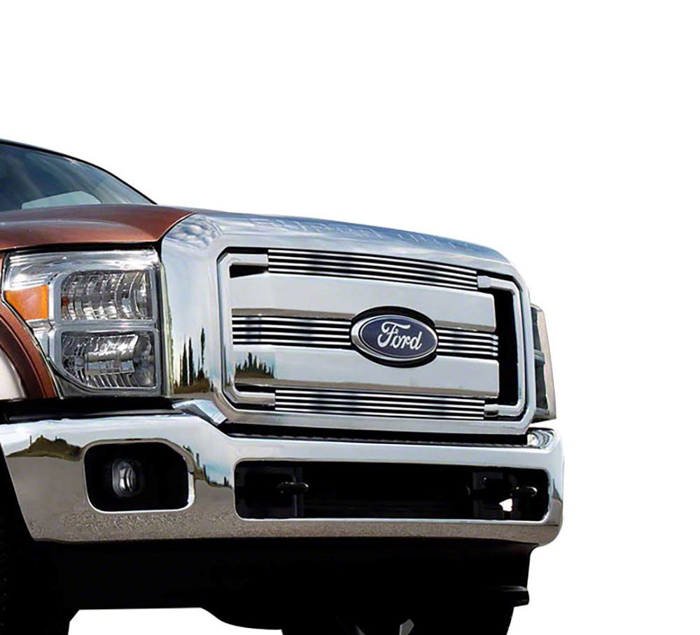 Application. The Stainless Steel Upper Overlay Grilles perfectly fit the 2011-2016 Ford F-250 Super Duty King Ranch, Lariat, and XLT models.