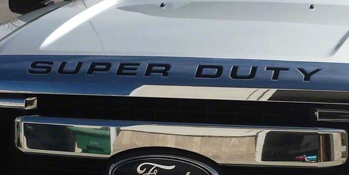 Maintenance. The Super Duty Grille Letter Inserts' matte black surface is both fashionable and useful. Your vehicle's front end will look cleaner for longer because it's easier to clean and less likely to show smudges and fingerprints.
