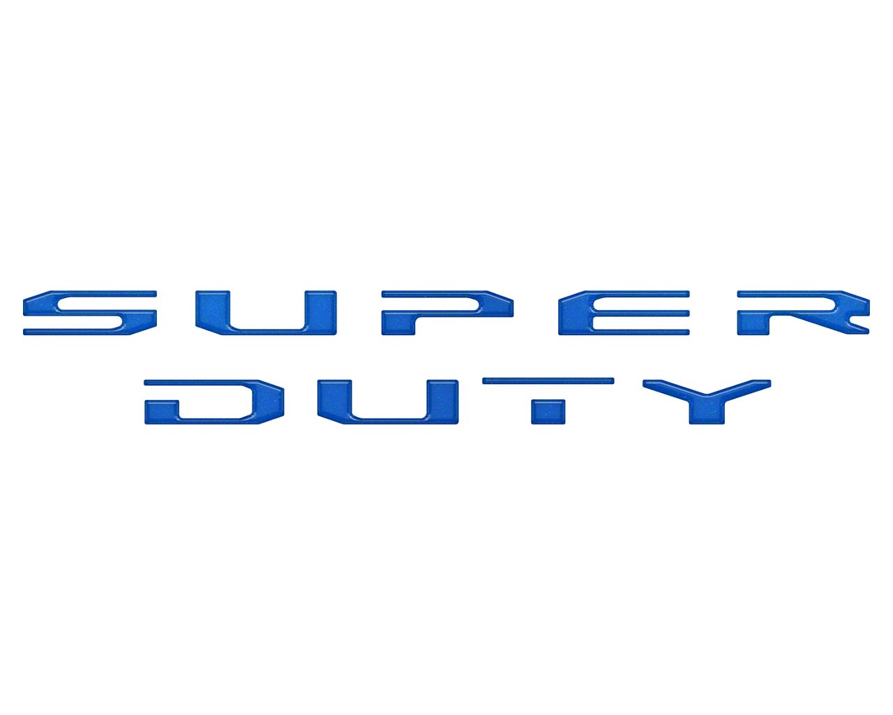 Stylish Protection. The Tailgate Letter Overlays are an official Ford licensed product designed to enhance the style and provide additional protection for your vehicle. These overlays spell out "Super Duty" with a Velocity Blue design.