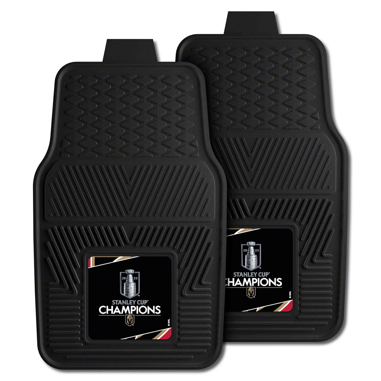 Application. These Vinyl Front Floor Mats with Vegas Golden Knights 2023 Stanley Cup Champions Logo; Black are a universal fitment product, but some adaptation may be required depending on the size and shape of your vehicle’s floor space.