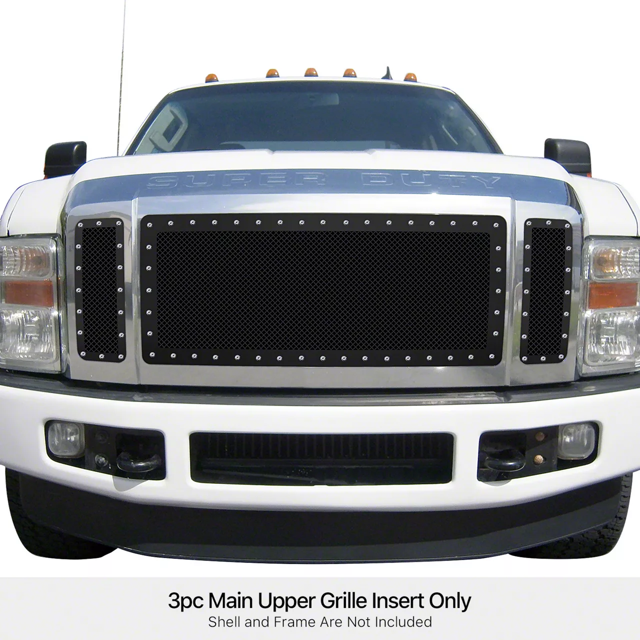 Application. This Wire Mesh Rivet Style Upper Replacement Grille fits 2008-2010 F-250 Super Duty King Ranch, Lariat, and XLT models.