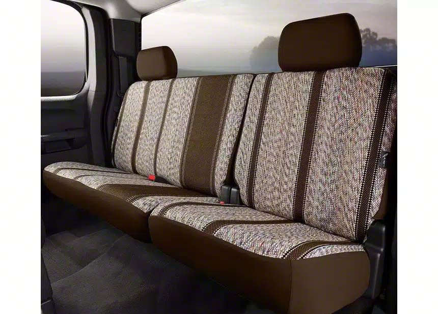 Robust and Wrap-Around Protection. This Fia Wrangler Series Rear Seat Cover (Brown) is designed to enhance the interior of your Ford F-250 while providing robust protection. Featuring a form-fit wrap-around design and multidirectional stretch trim, this cover molds perfectly to the contours of bucket seats, ensuring a snug and tailored fit.
