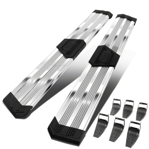 Construction and Appearance. What's more? These running boards are constructed with robust and corrosion-resistant stainless steel, topped with a chrome finish for a sleek, attractive look. The design includes slip-resistant ABS plastic end caps that further enhance safety and durability. With a weight capacity of 500 pounds, these step bars are built to withstand heavy use without compromising structural integrity.