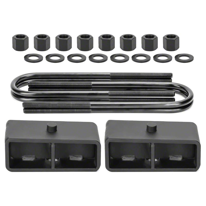 Design. If the front of the vehicle has been lifted or if you want to lessen the natural rake from the front to the back, these 2-Inch Rear Lift Blocks can help level it out. Beyond aesthetics, a more level vehicle can enhance handling and weight distribution.