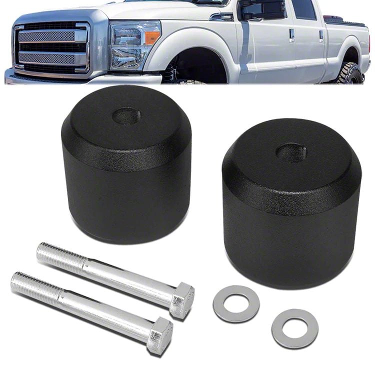 Enhanced Height and Clearance. The 2.50-Inch Front Leveling Kit is designed to increase the height and ground clearance of your 4WD F-350 Super Duty. This 2.50-Inch Front Leveling Kit allows for the addition of larger wheels and tires, creating a more aggressive stance and improving off-road capability.