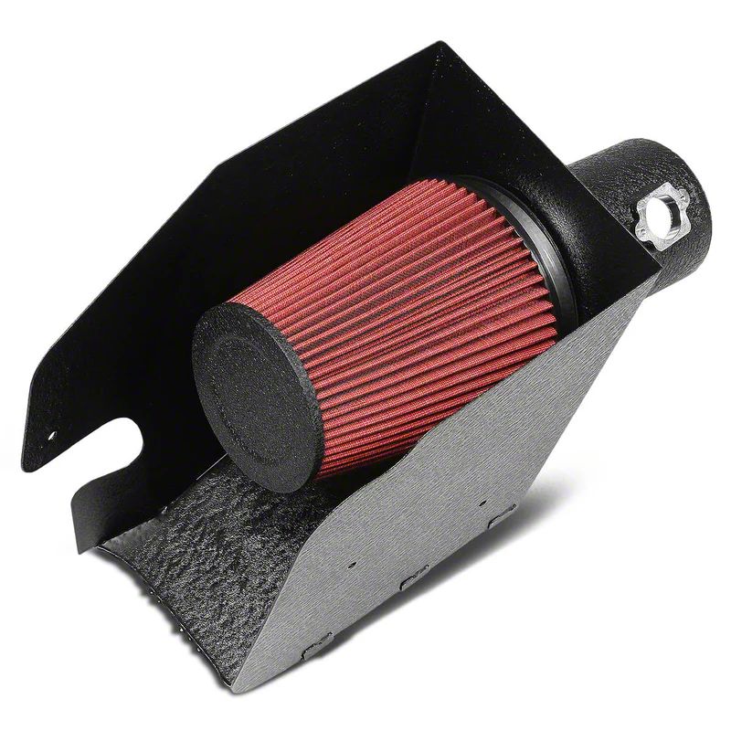 Aluminum Cold Air Intake with Red Filter and Heat Shield; Black
