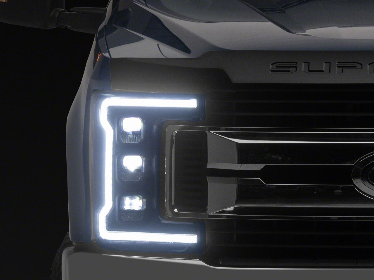 Application. The APEX Series Sequential Turn Signal Full LED Headlights are structured to precisely fit 2017-2019 F-350 Super Duty models w/ factory halogen headlights.
