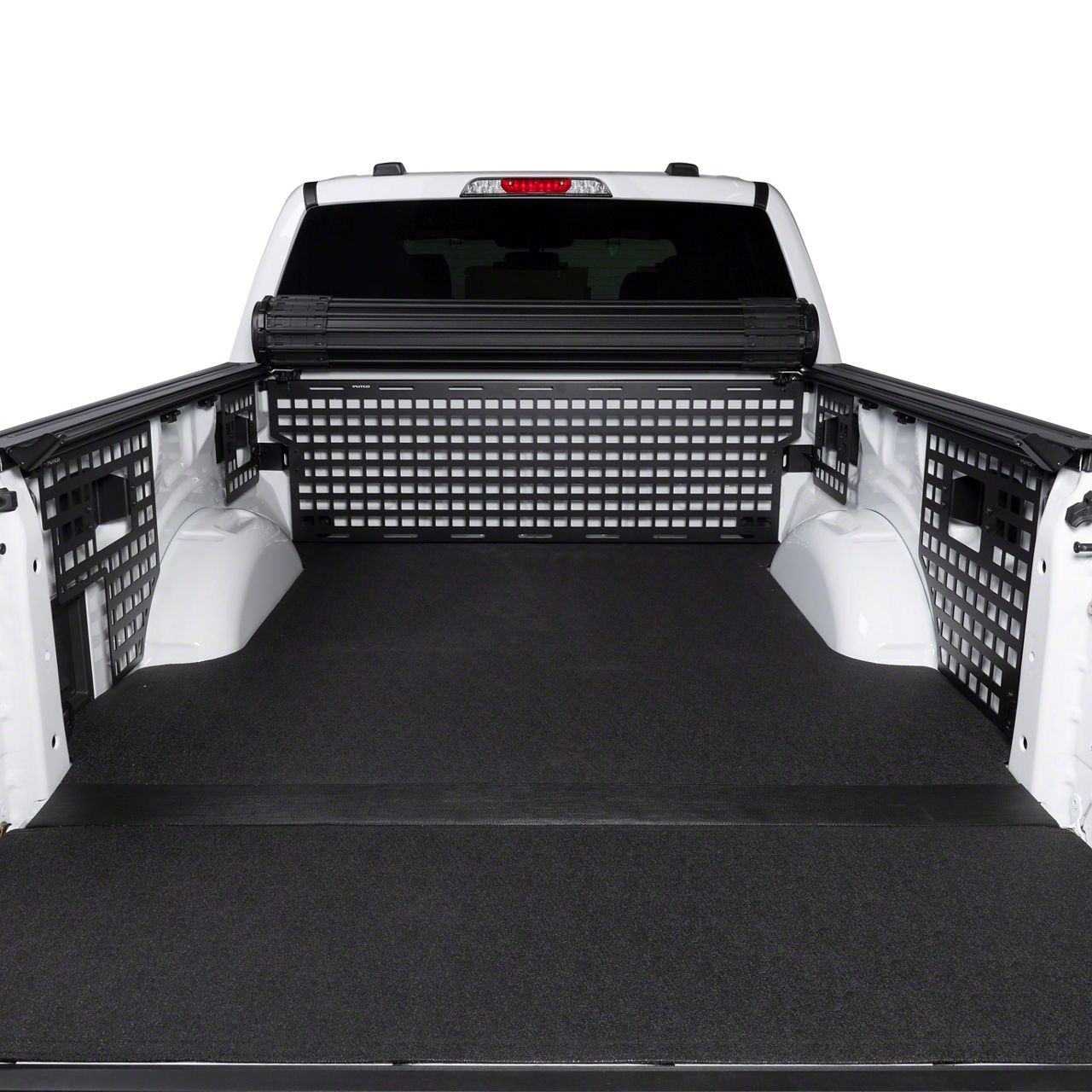 Cutting-Edge Design. The Bed Molle Panel; Front is manufactured to secure tools, trail gear, jacks, and more by preventing sliding around during travel. Built to accommodate your vehicle, this panel is engineered for the front position and will deliver superior cargo management everywhere you go.