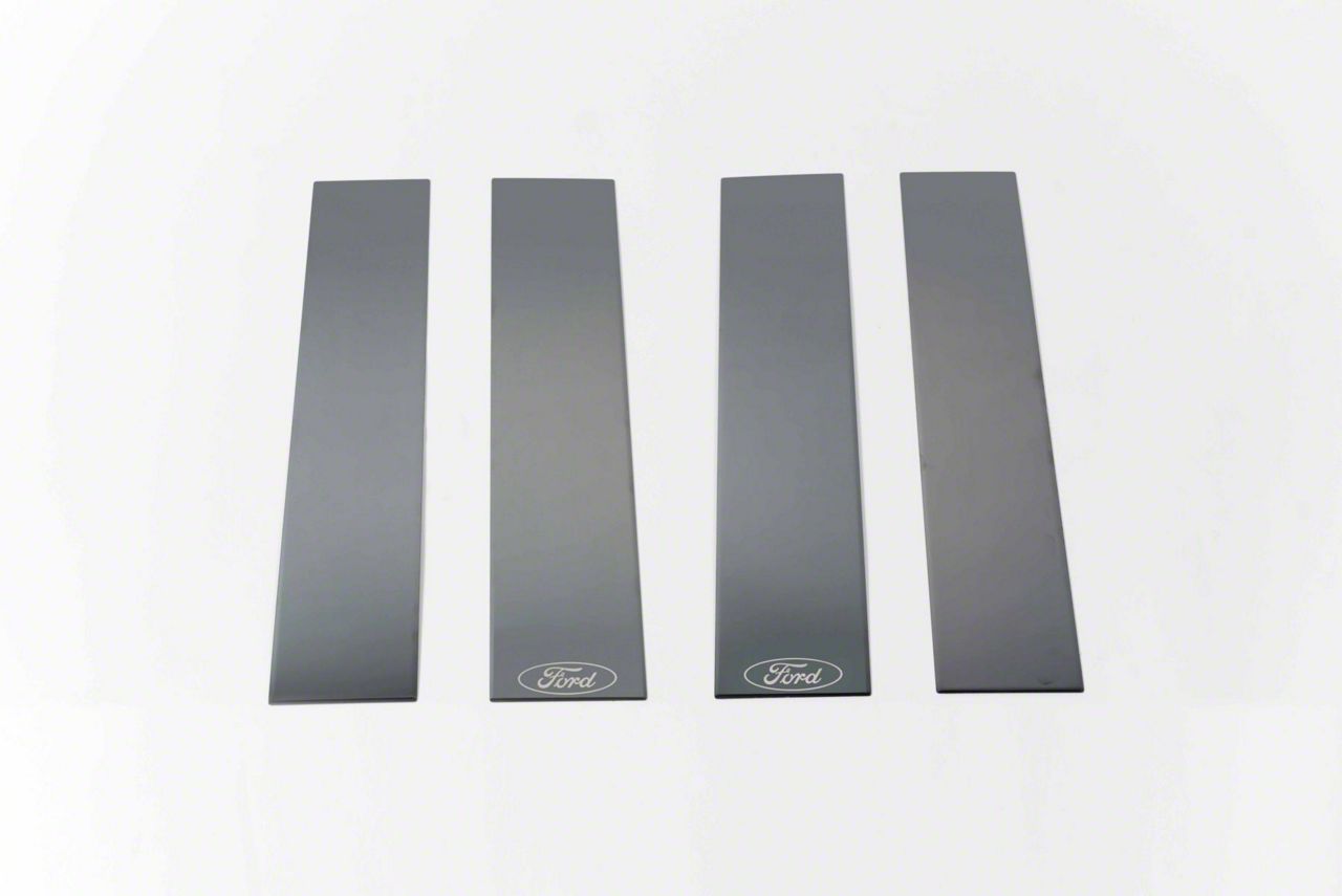 Dynamic B-Pillar Accents. Accentuating your Super Duty is made much easier with these Black Platinum Pillar Posts with the Ford Logo. These stylish trim accents mount onto your truck’s B-pillars giving an often neglected area of your truck a dynamic new look. These pillar post accents feature laser-etched logos and an all-black look that will contrast handsomely with your truck’s color. Moreover, these trim accents are designed for easy installation so you spend less time working and more time driving.