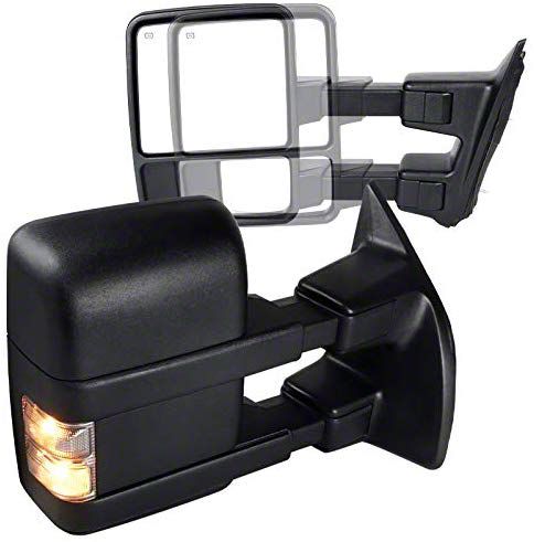 Enhanced Road Safety. Be bold but not blind on the road by installing these Black Powered Heated Towing Mirrors with Smoked Turn Signals. These side mirrors are built to safeguard the side and rear views even on foggy, rainy, or snowy weather conditions. These mirrors also feature manual telescoping style mirrors with convex spotter glasses for longer and wider viewing angles. Using this pair on your Ford Super Duty will provide you with solid confidence in towing and backing.