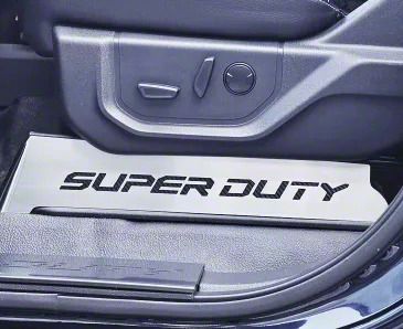 Customize your 2017-2022 Ford F250 with this Brushed Stainless Lower Seat Vanity Plate featuring the bold "Super Duty" logo. Designed to perfectly complement your truck's interior, this 2-piece set is precision-crafted from durable, polished stainless steel for a premium look. Built to impress and made to last.