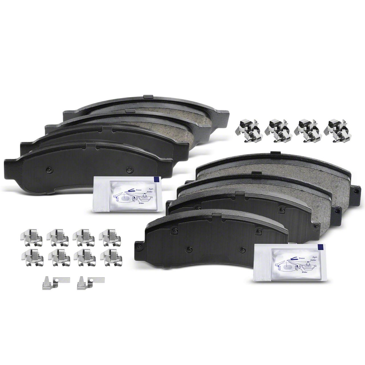 Construction and Features. Crafted from premium ceramic material, these brake pads provide excellent heat resistance and minimal brake dust for a cleaner performance. The matte black finish backplate enhances durability and adds a sleek appearance. Built to OE compatibility standards, these pads match your truck's factory specifications for dependable and consistent braking performance.