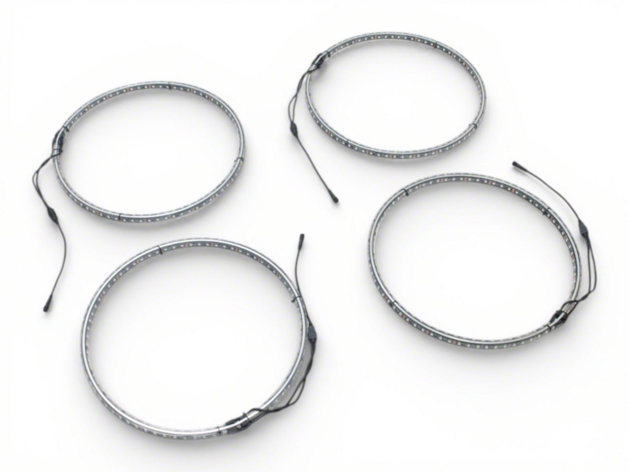 Stunning Illumination. The Chasing Wheel Light Set; 15.50-Inch Diameter is the lighting accessory for your ride that will take its looks to stunning new heights. Specifically, these wheel lights utilize powerful LED RGB lights capable of generating a wide array of colors and effects. This translates to outstanding lighting accents that are sure to turn heads everywhere you drive. Furthermore, these lights will make your ride more visible when out on the road, helping increase road safety, especially when making emergency roadside stops.