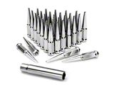 Secure. A secure fit on the wheel studs is made possible by the Chrome Spiked Lug Nuts' sturdy construction and accurate threading. For the wheels to remain stable and safe, this fastening is essential, especially on a heavy-duty vehicle like the F-350 Super Duty that may be used for hauling or towing large objects.