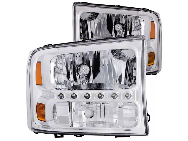 Application. These Crystal Headlights with Chrome Housing fit 1999-2004 F-350 Super Duty models without factory-sealed beam headlights.