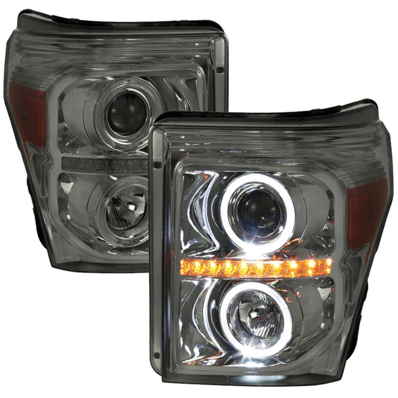 Application. These Smoked Dual Halo Projector Headlights fit all 2011-2016 Ford F-350 Super Duty models.