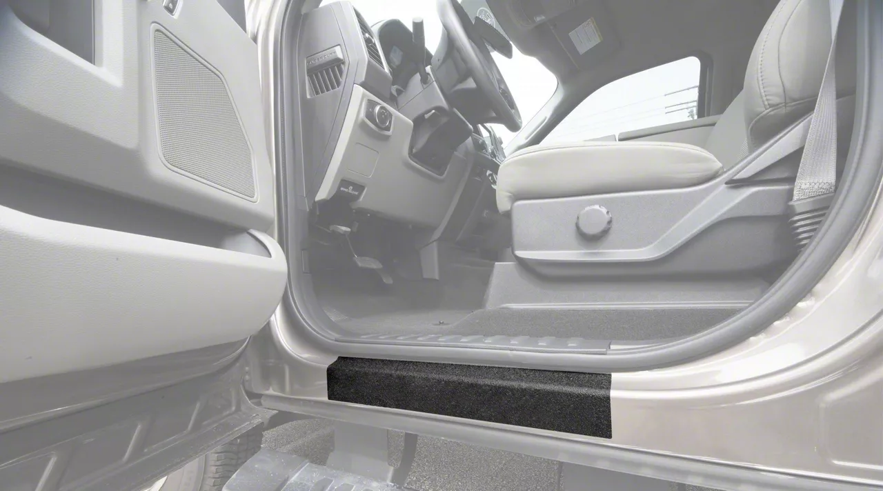 Simple Installation. Mounting the Front Door Sill Protection set on the Passenger and Driver Side of your truck is a matter of minutes. The only tricky part might be thoroughly cleaning the installation surface to give the 3M adhesive a smoother area. This will create a strong adhesive bond and ensure the overlays stay put no matter how often you step on them.