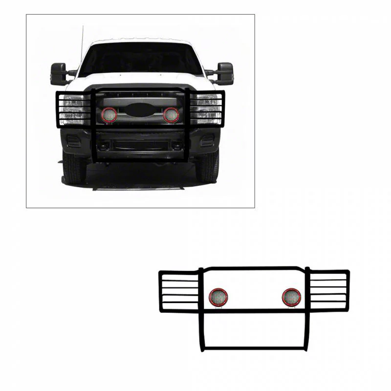 Application. This Grille Guard with 5.30-Inch Red Round Flood LED Lights fits 2011-2016 F-350 Super Duty.