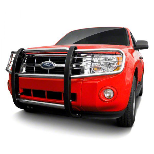 Construction and Appearance. Constructed from premium-grade stainless steel, this grille guard boasts a polished stainless steel finish that resists corrosion and adds a sleek touch to your vehicle's front end. Thick rubber protectors line the uprights, providing additional defense against dings and scuffs.