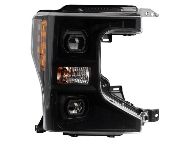 Construction and Appearance. Crafted with a durable matte black finish housing and a clear black lens, this headlight is built to withstand harsh road conditions and resist wear. Its stylish design complements the rugged aesthetics of your F-350 Super Duty, enhancing both form and function.