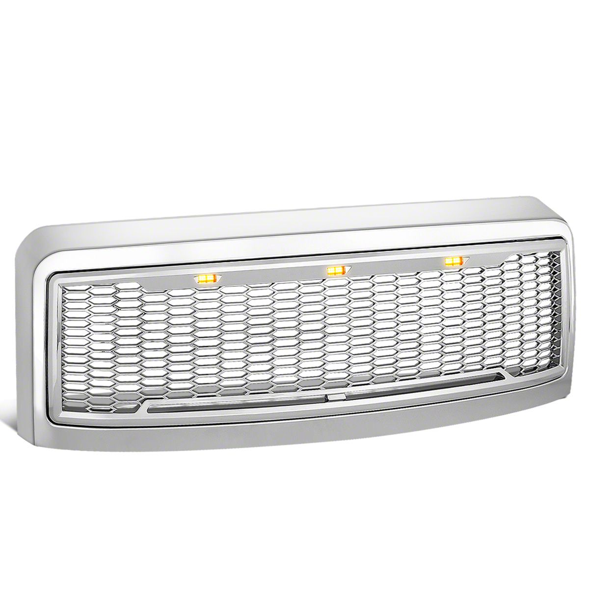 Stylish Grille Upgrade. The Honeycomb Mesh Style Upper Replacement Grille with LED DRL Light enhances the front-end appearance of your truck with a bold honeycomb design and a brilliant chrome finish. Featuring integrated LED daytime running lights, this grille improves both style and visibility on the road. The Honeycomb Mesh Style Upper Replacement Grille with LED DRL Light is the perfect blend of function and aesthetics for your Super Duty.