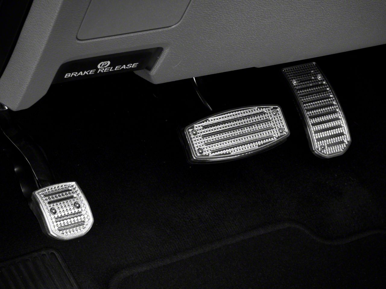 Bright Interior Styling. The Putco Liquid Pedal Covers; Track Design are an exceptional addition to your F-350, offering a blend of practicality, performance, and style. With the track design, these pedal covers deliver a sturdy grip under all driving conditions, significantly enhancing your vehicle's interior aesthetic while simultaneously improving your driving experience. Crafted from heavy-duty and long-lasting aluminum, these covers are designed to resist wear and tear, maintaining their sleek and polished look over time.