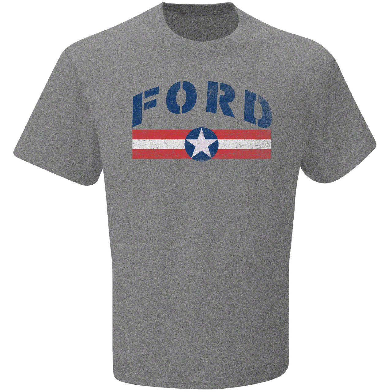 Ford Themed Graphic T-Shirt. This great looking gray short sleeve t-shirt is a must have for all Ford enthusiasts. Officially licensed, this graphic tee features an old style Air Force logo. This T-Shirt makes the perfect gift for yourself or the fellow Ford lover in your life.