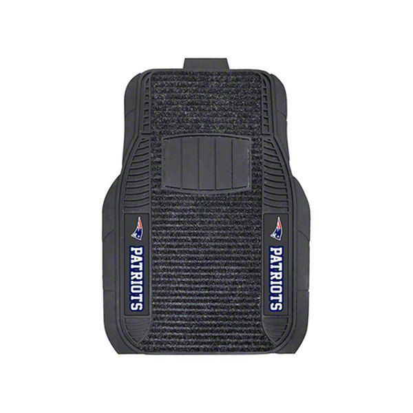 Application. These Molded Front Floor Mats with officially-licensed New England Patriots logo feature a universal design so they will fit most makes and models of vehicles. These Mats can be trimmed to fit if necessary. Sold as a set of two Front Mats.