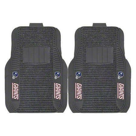 Application. These Molded Front Floor Mats with officially-licensed New York Giants logo feature a universal design so they will fit most makes and models of vehicles. These Mats can be trimmed to fit if necessary. Sold as a set of two Front Mats.